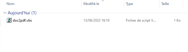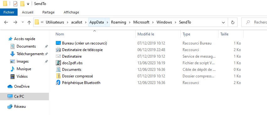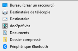 Si vous faites à présent clique droit > Envoyer vers vous aurez à présent le raccourcie doc2pdf.vbs de présent :