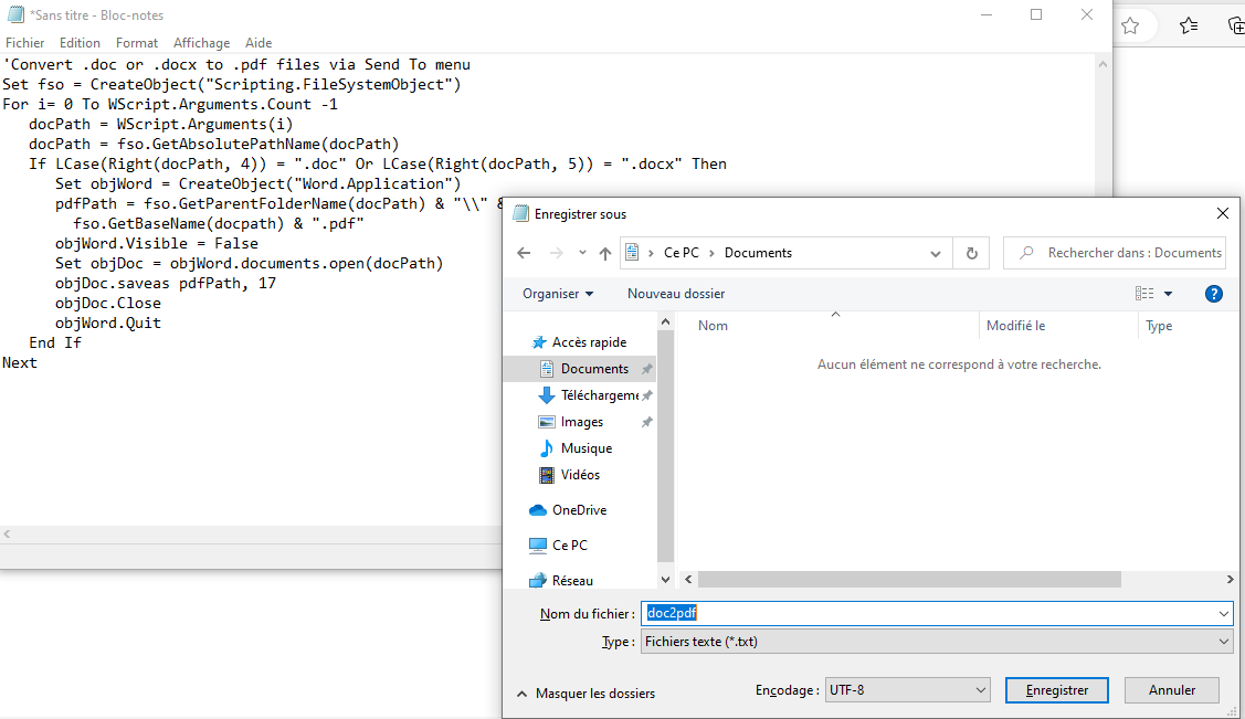 Il faut d’abord enregistrer le code en .vbs pour que le script s’exécute :