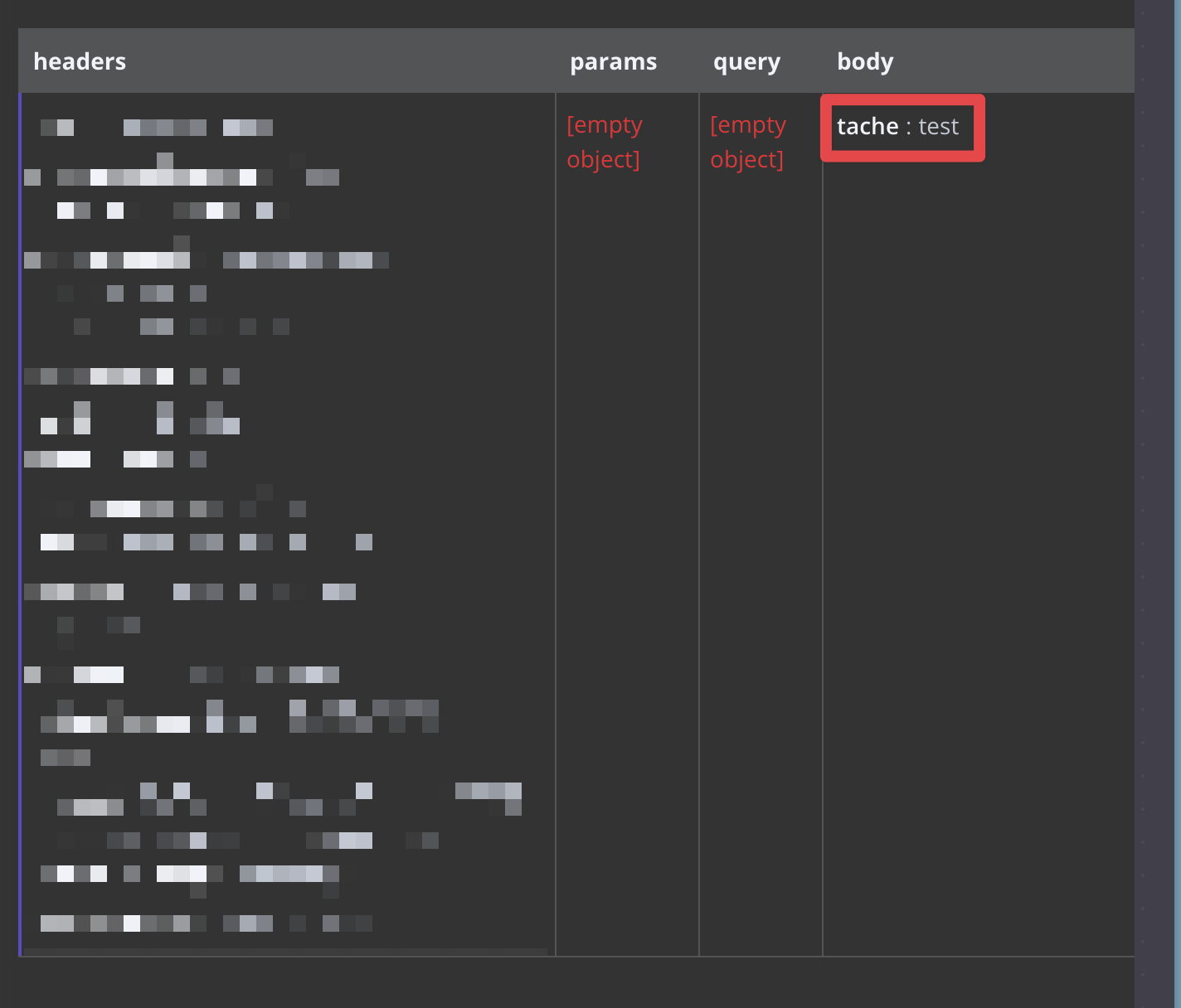 Vous pouvez à présent cliquer sur “listen for test event” dans n8n , puis exécuter le Workflow, définir votre texte. Vous pouvez retrouver ensuite vos données dans n8n comme ceci :