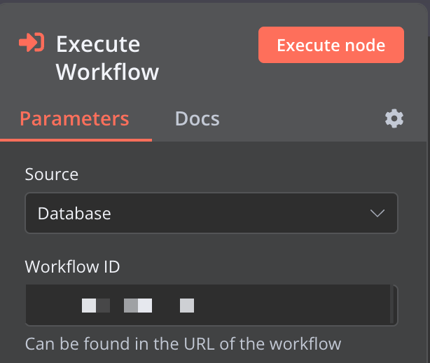 https://smsapi.free-mobile.fr/sendmsg?user={{$json.user}}&pass={{$json.pass}}&msg={{$json.mess}}Pour pouvoir l’utiliser à partir d’un autre workflow on va utiliser le trigger “Execute Workflow Trigger”. Ce trigger prend en paramètre le résultat d’un node précédent, on va le voir après, lors d’un déclenchement à partir d’un autre workflow.