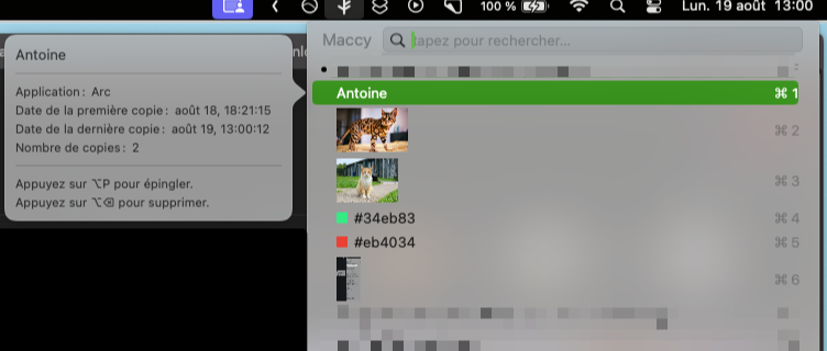 Section intitulée « 1- Maccy »Prix : gratuit par homebrew