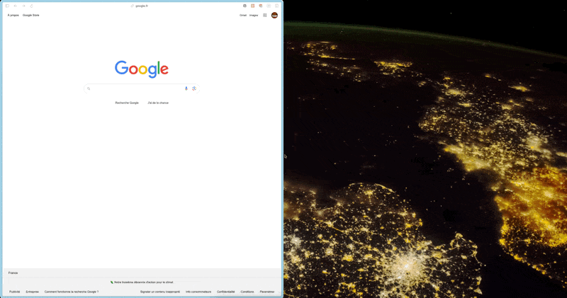 Rectangle permet de redimensionner les fenêtres en glissant les fenêtres vers les coin de l’écran (ce que fait déjà Windows hein 😆 !) Exemple :