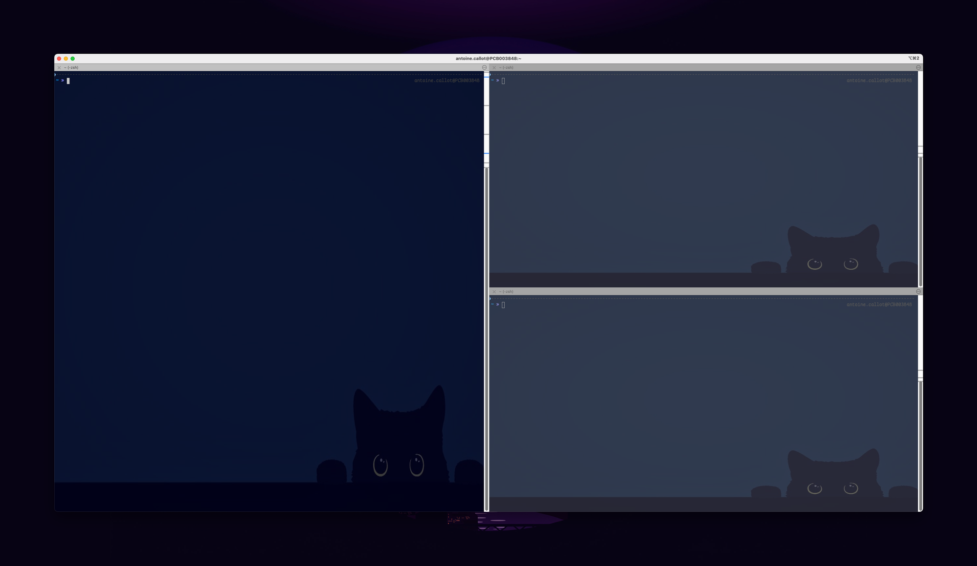 - ⌥ + ⌘ + Flèche gauche / Flèche droite = se déplacer entre les terminal
