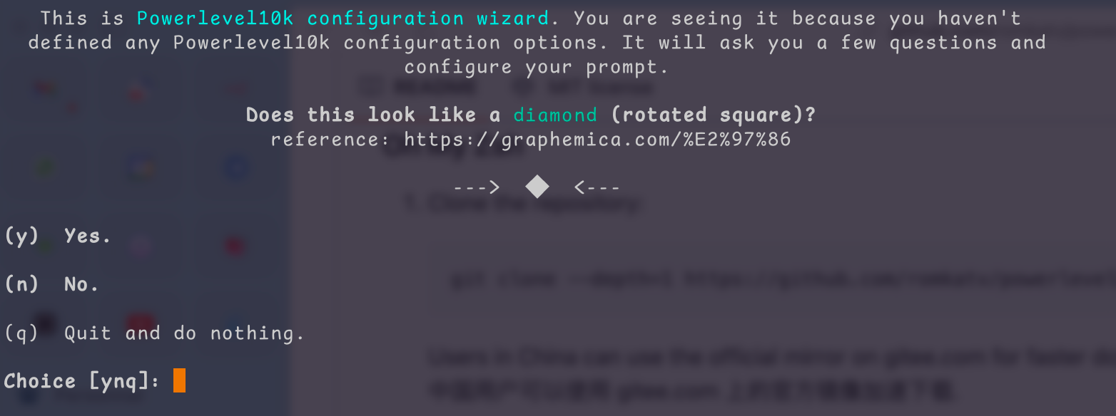 ZSH_THEME="powerlevel10k/powerlevel10k"Vous aurez ensuite une petite installation à l’écran qui va s’afficher :