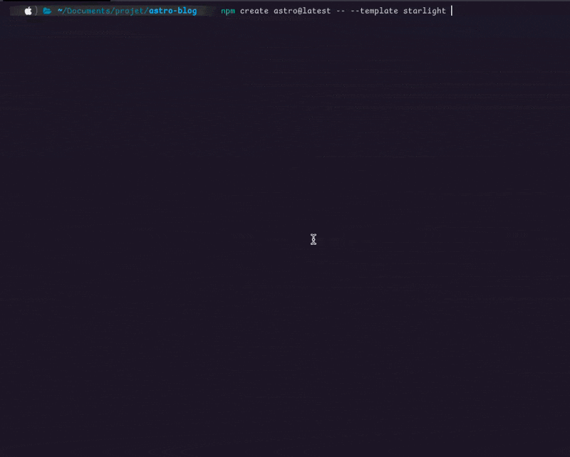 Commençons par la base : créer un projet Astro avec la template starlight comme ceci :