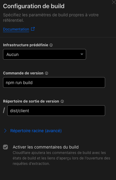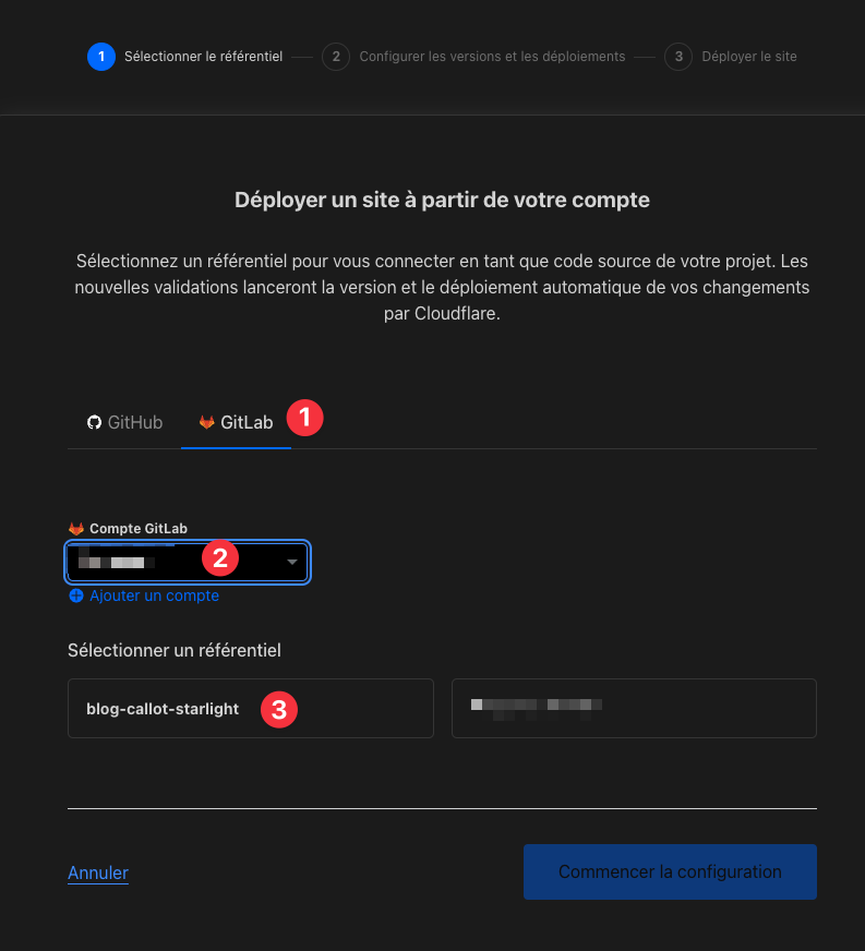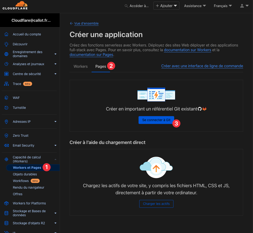 Voici comment j’ai procédé pour mettre le site sur Cloudflare Pages :