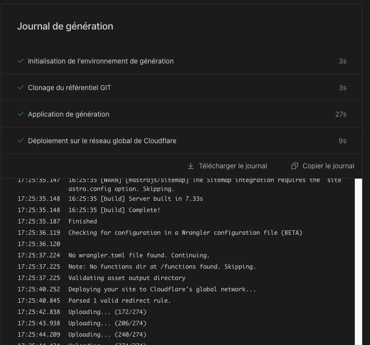 De plus, selon le nombre de vues sur votre page, cela va rendre l’hébergement de votre site gratuit grâce à l’utilisation Cloudflare Pages 😂