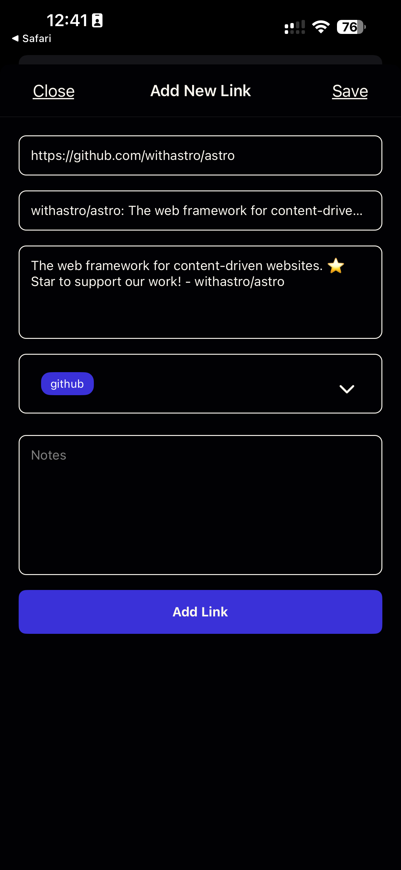 Section intitulée « LinkBuddy : Vos liens dans la poche »Sur iOS, j’utilise LinkBuddy : For Linkding. L’application est propre, gère le partage natif (ce n’est pas le cas d’autres applications que j’ai testées) et se connecte via l’API à votre instance Linkding (si celle-ci est exposée, bien sûr).