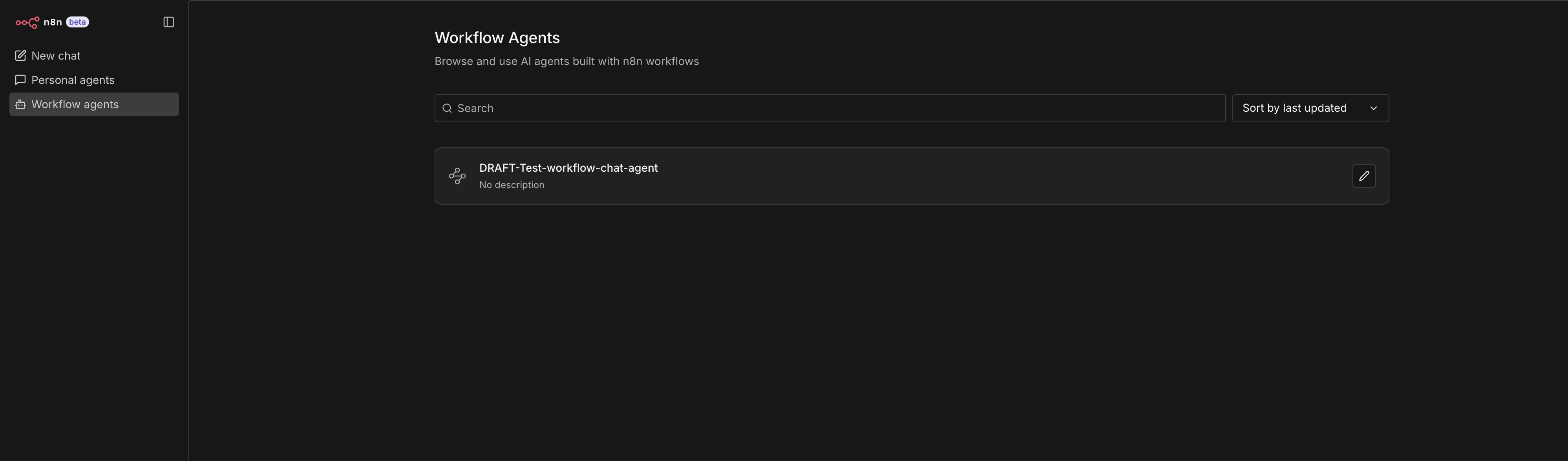 Par exemple, une fois que votre workflow est publié avec ce trigger, vous pouvez vous rendre dans chat>Workflow agents :