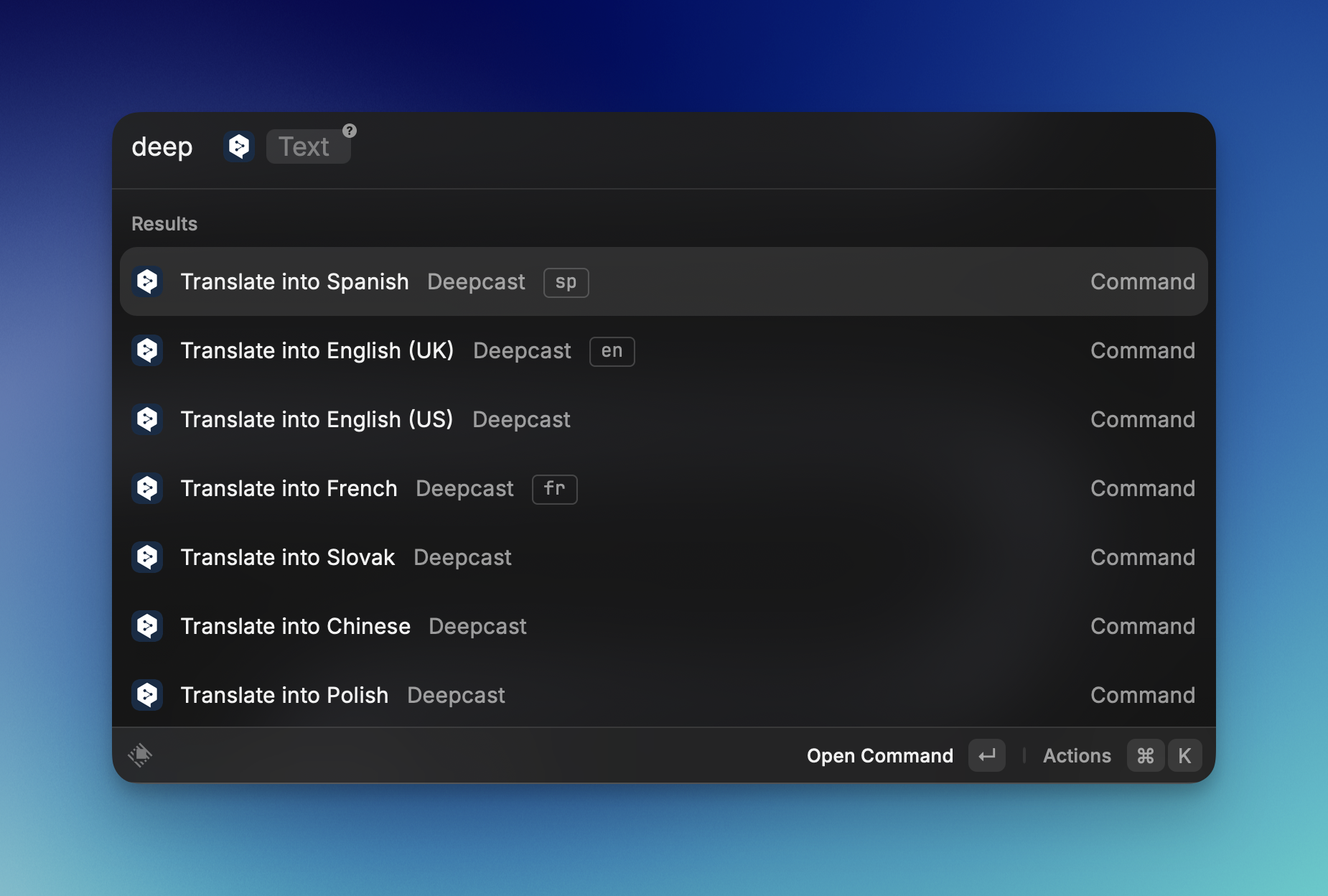 Traduction avec un simple raccourci clavier : Découvrez DeepCast sur Raycast