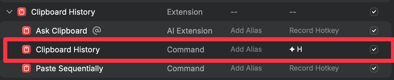 Section intitulée « Introduction »Une des grandes forces de Raycast est également le clipboard history (historique du presse-papier).